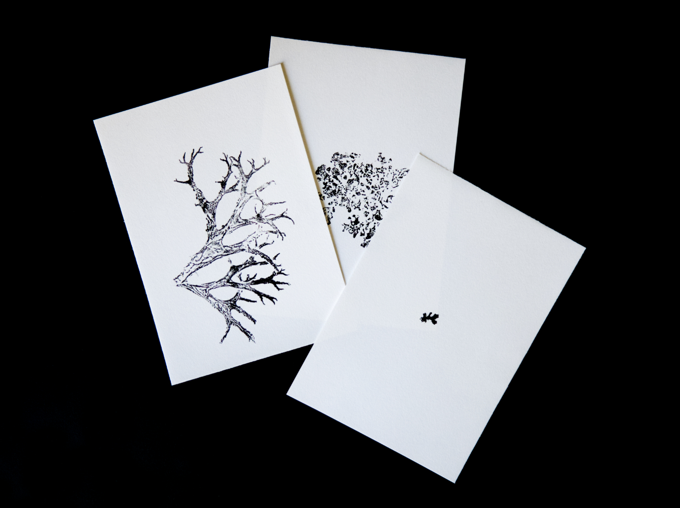 wurden Flechten, die für diesen Zweck gepresst und getrocknet wurden. So entstand eine Serie flockenartiger