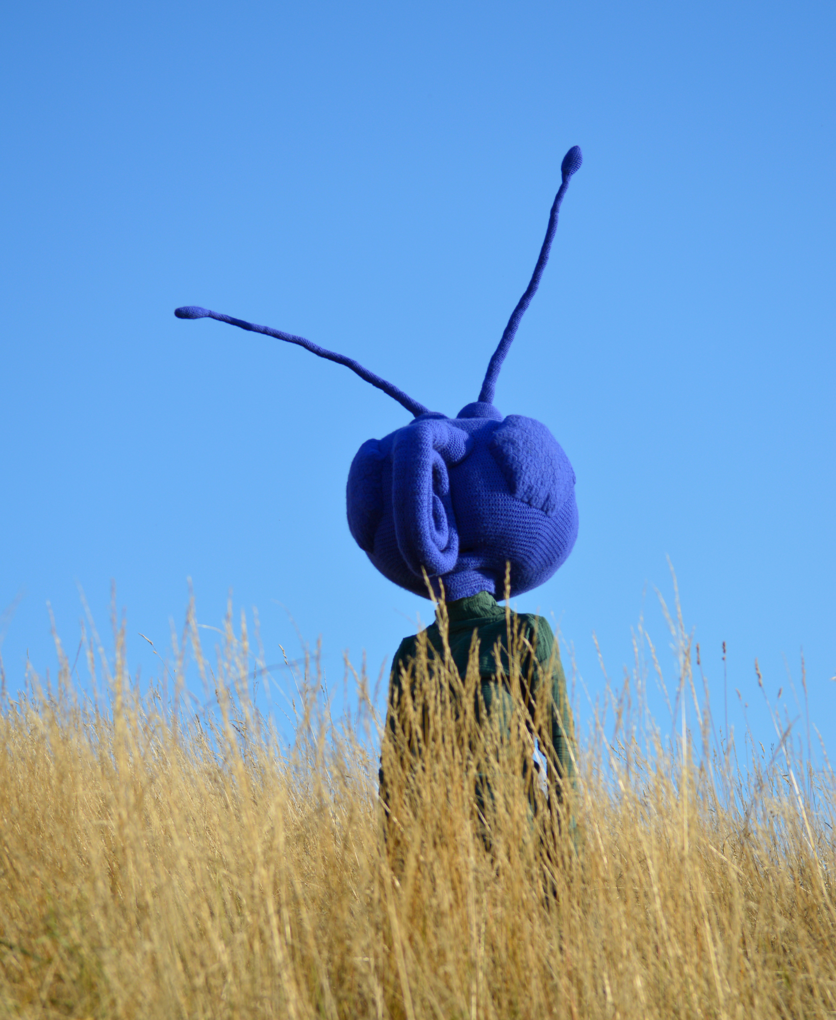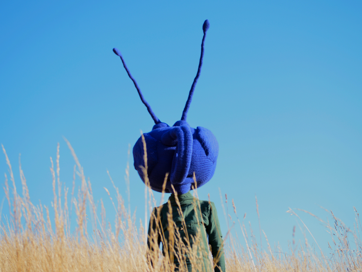 Die Textilskulptur “Masked Insect” ist anziehbar und besteht aus